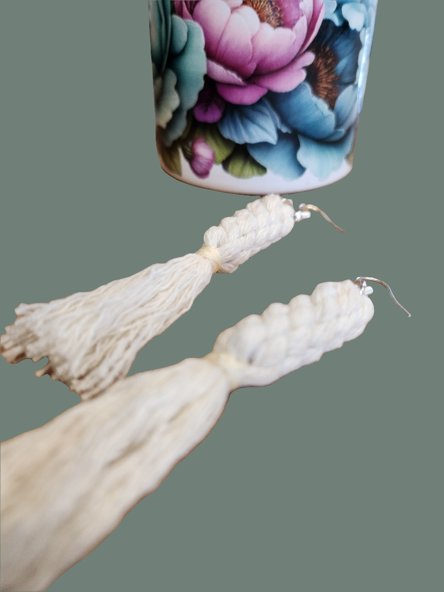 These Boho Knotted Macramé Long Tassel Fringe Earrings in Ivory White are the perfect statement accessory for any outfit and occasion.