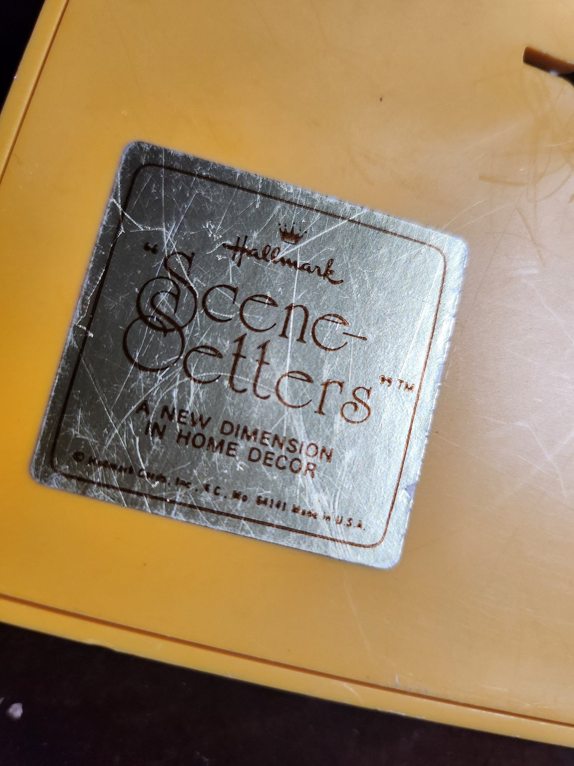 Hallmark Vintage scene- setters shadow box 3d greeting card. Yellow plastic with glass scenery. Good condition. 1979.